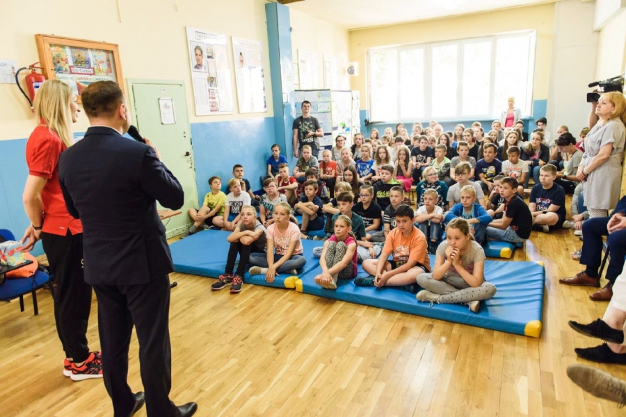 "To fajne miejsce na inaugurację, ponieważ absolwentem tej szkoły jest wybitny koszykarz Marcin Gortat. Nie mogło się więc przydarzyć wam nic lepszego, jak być pierwszą szkołą na szlaku trzeciej edycji Koszykarskiej Łodzi. Życzę pozytywnych wrażeń" - dodał prezydent Trela.