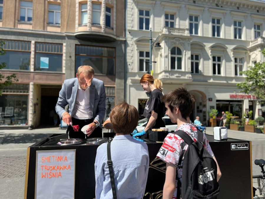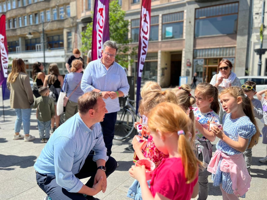 "Chciałam zaprosić na miejski dzień dziecka, który rusza 4 czerwca od godziny 12:00 na ulicy Piotrkowskiej. Także dzisiaj Lewica rozdaje lody, natomiast ten dzień dziecka jeszcze będzie w weekend, więc zapraszamy mieszkańców na uroczyste obchody dnia dziecka" — mówiła Małgorzata Moskwa-Wodnicka, Wiceprezydent Miasta Łodzi.