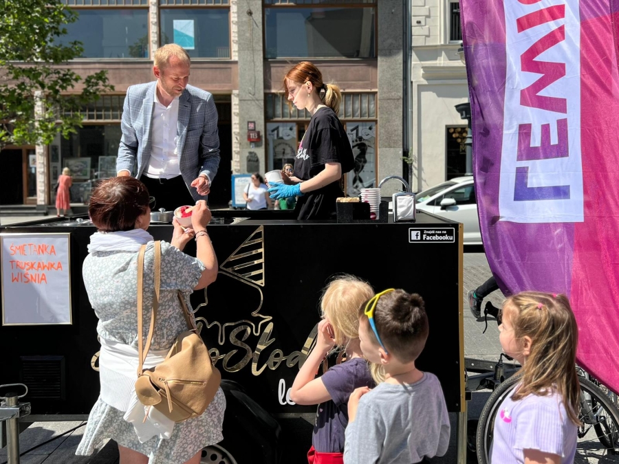 Przypomnienie postulatów, skierowanych do rodziców i najmłodszych, to nie jedyne, co w Dniu Dziecka przygotowała Lewica. Na najmłodszych czekały pyszne lody, a chętnych nie brakowało.