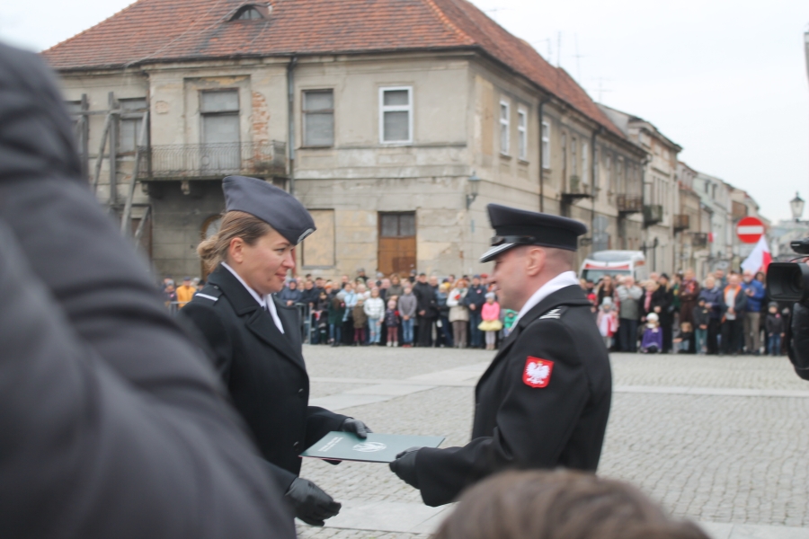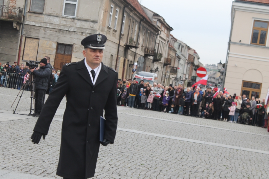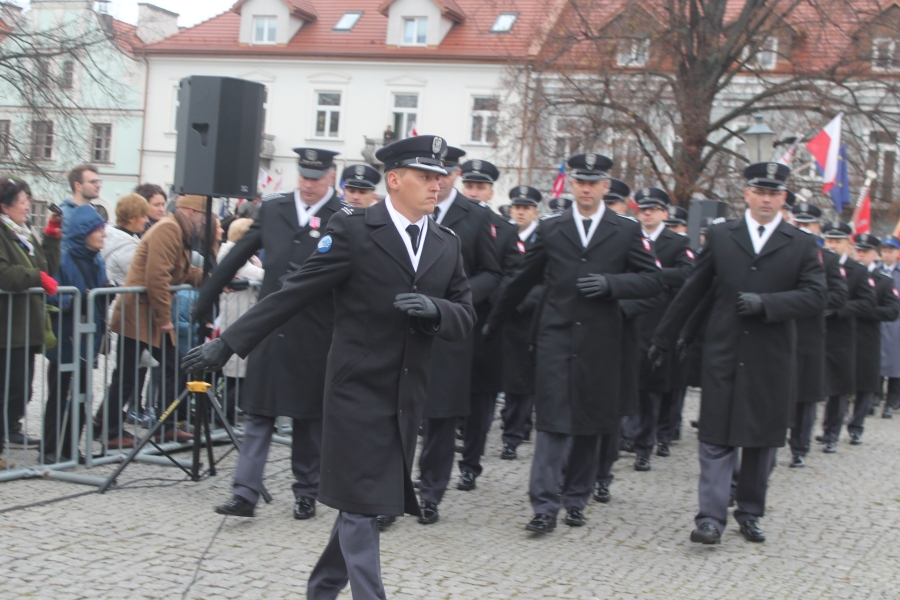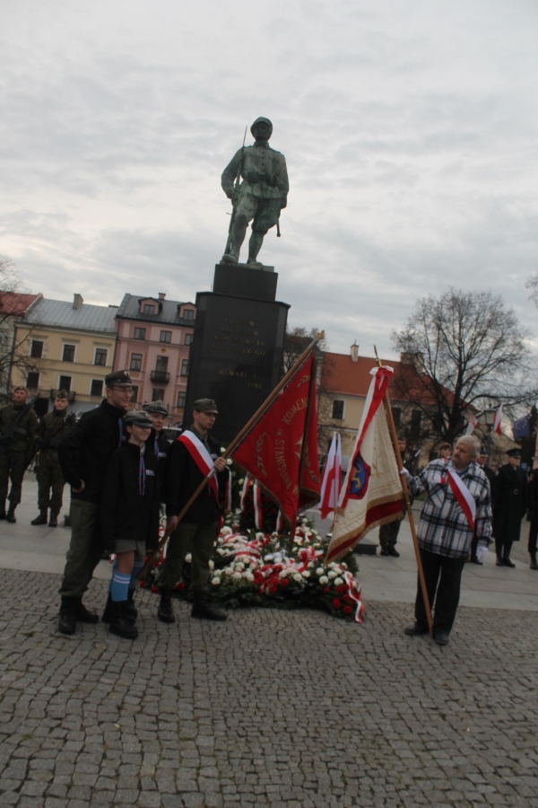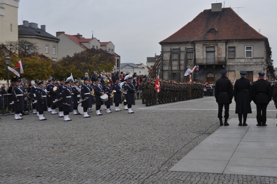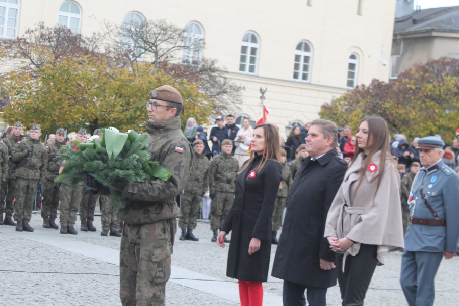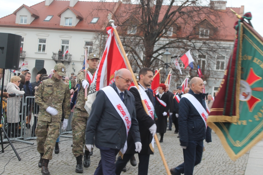 Goście i organizatorzy Święta Niepodległości,  nadający ton rocznicowej uroczystości , kontynuowanej na Rynku przy Pomniku Czynu Legionów Józefa Piłsudskiego,  akcentowali