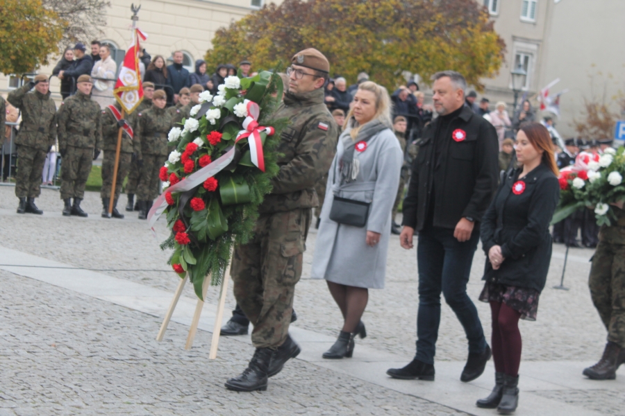 wartości patriotyczne umacniające narodową wspólnotę, tak ważną w sytuacji zagrożenia zewnętrznego . Wiceminister MON Wojciech Skurkiewicz podkreślił, że tegoroczne obchody ŚwiętaNiepodległości w Polsce odbywają się w cieniu regularnej wojny w Ukrainie. Ta wojna jest tragiczna nie tylko dla żołnierzy, ale również dla ludności cywilnej. Wolność trzeba więc pielęgnować w każdej chwili naszego życia, wspominając naszych bohaterów – mówił minister. Dodał, że dzisiaj Polak dla Polaka powinien być przyjacielem, wsparciem, ostoją i orężem w